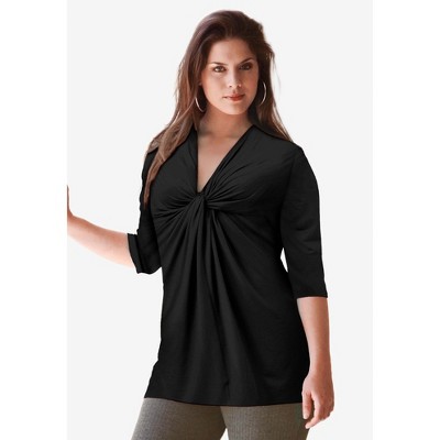 Woman Within Rayon 7-Day Three-Quarter Sleeve Tab-Front Tunic
