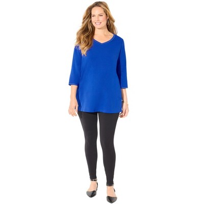 Women's Plus Size 3/4 Sleeve Printed Alegra Tunic with Pockets - White Mark