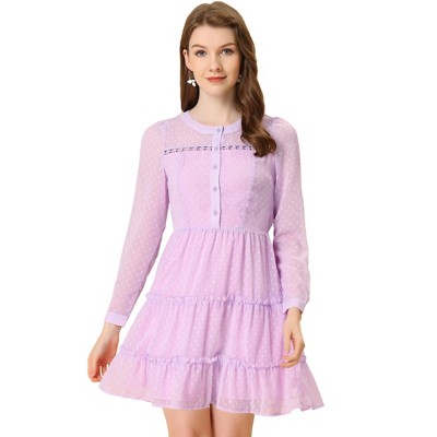 Allegra K Women's Floral A-line Smocked Waist Tiered Ruffled Chiffon Mini Dress
