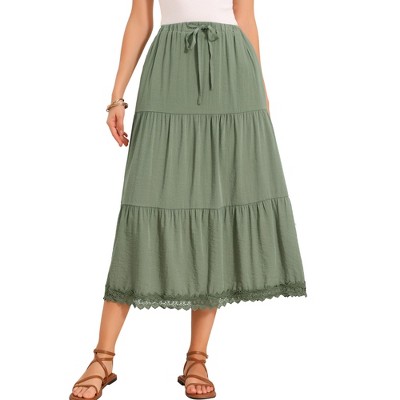 INSPIRE CHIC Women's Summer Elastic High Waist Tiered Casual Beach A-Line Maxi Skirt