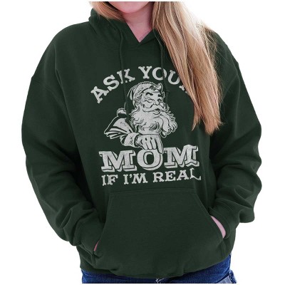 Funny Ask Your Mom If I'm Real Santa Hoodie Sweatshirt Women Men Brisco Brands