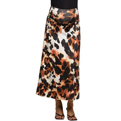 24seven Comfort Apparel Maternity Animal Print Elastic Waist Maxi Skirt