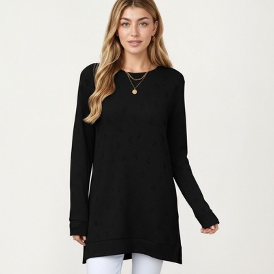 Anna-Kaci Women's Long Sleeve Ribbed Knit Pullover Top with Side Slit Detail
