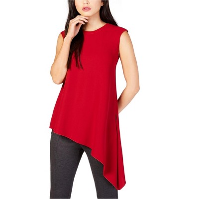 Anne Klein Womens Asymmetrical Hem Pullover Blouse