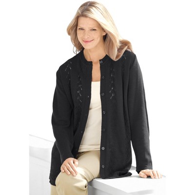 Woman Within Long-Sleeve Pointelle Cardigan Sweater