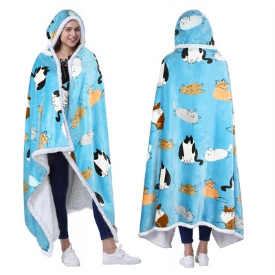 Catalonia Women Cozy Plush Wearable Blanket Hooded Cape Wrap Shawls Snuggy Fuzzy Fleece with Hand Pockets, Gift for Woman Wife