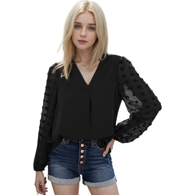 Anna-Kaci Women's Chiffon Blouse Swiss Dot Top for Everyday Looks