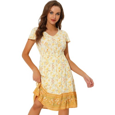 INSPIRE CHIC Women's V Neck Flutter Sleeve Smocked Waist Bohemian Dress