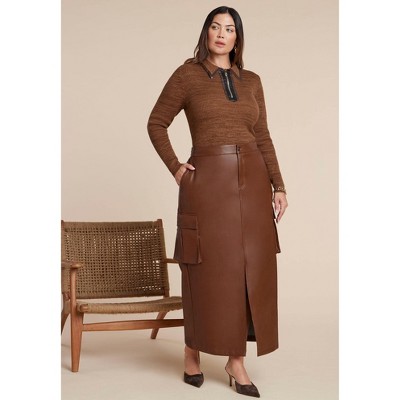 ELOQUII Maxi Cargo Faux Leather Skirt