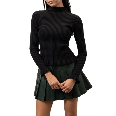 August Sky Women's Mock Neck Ribbed Pullover