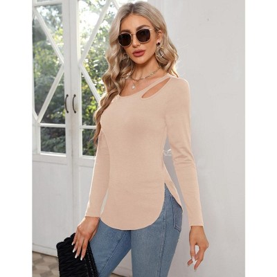 Women¡¯s Long Sleeve Cutout Asymmetrical Neck Tshirt Slim Fit Tunic Blouse
