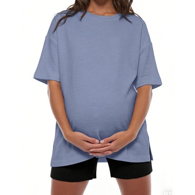 Garvee Women's Maternity T Shirt Short Sleeve Side Slit Pregnancy Top for Casual Daily Wear