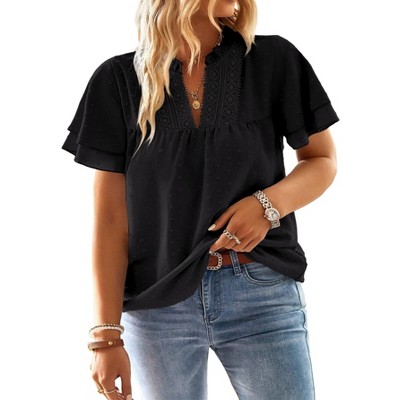Whizmax Women Plus Size V Neck Button Blouse Short Sleeves Summer Comfy Lightweight Casual Tunic Tops