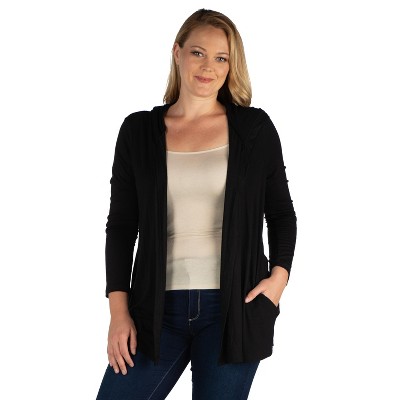 24seven Comfort Apparel Open Front Lightweight Hooded Plus Size Cardigan