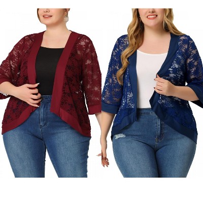 Agnes Orinda Women's Plus Size Open Front 3/4 Sleeve Lace Elegant Casual Lightweight Cardigans
