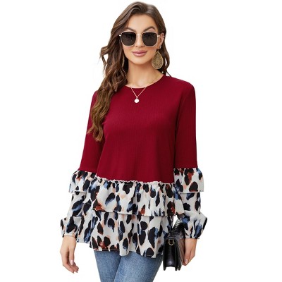 Anna-Kaci Women's Leopard Print Long Sleeve Cuffed Sweater- Small ,Black
