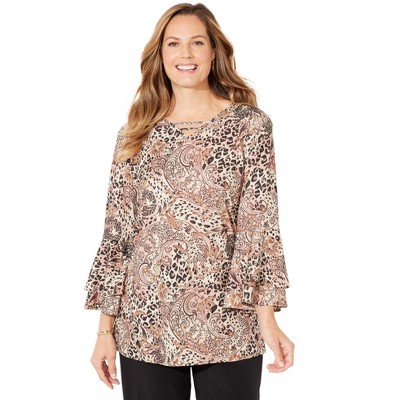 Catherines Petite V-Neck Bell-Sleeve Georgette Blouse