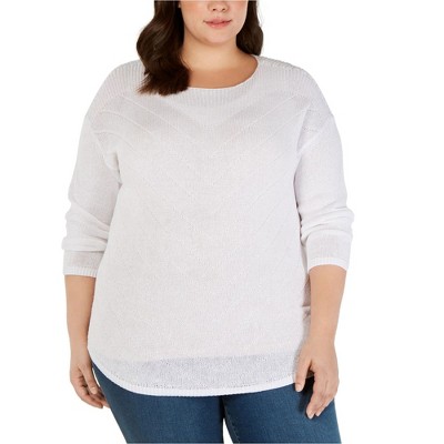 I.N.C International Concepts Womens Pointelle Tunic Sweater, white, 2X