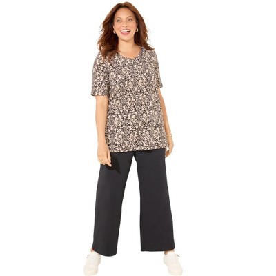 Roaman's Ultra Drape V Neck Lace Print Tee