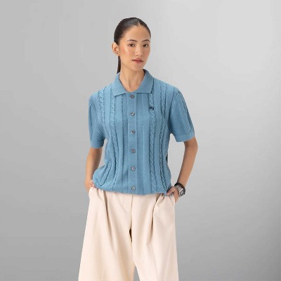 Members Only Women's Cable Knit Vintage Short Sleeve Polo Cardigan Sweater