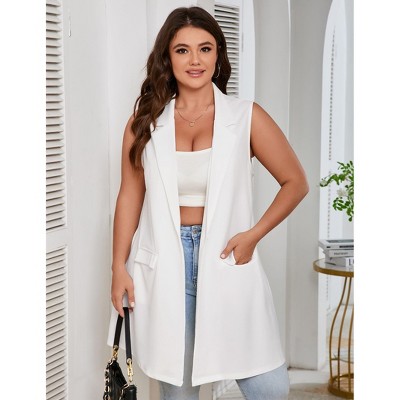 Coolmee Women's Casual Plus Size Vests Classic Sleeveless Mid Long Length Cardigan Suits Casual Long Open Front Office Blazer Jackets 3XL Apricot