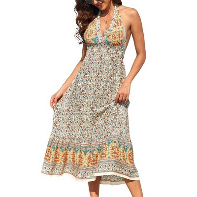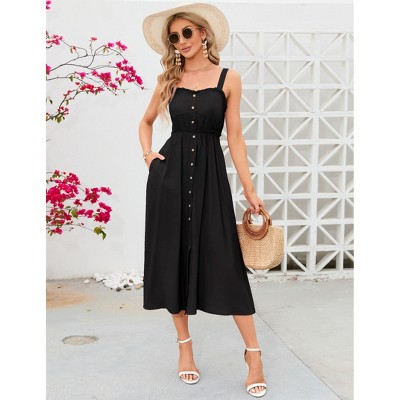 Clearlove Women's Casual Summer Midi Dress Spaghetti Strap Button Down Sleeveless A-Line Beach Swing Sundress