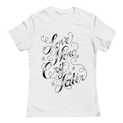 Rerun Island Women's Love Now Cry Later Short Sleeve Graphic Cotton T-Shirt - White XL