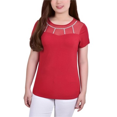 NY Collection Womens Crepe Knit Basic T-Shirt