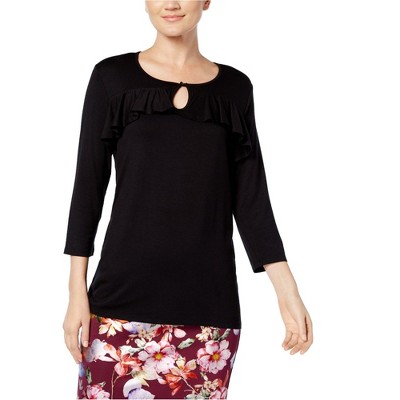 NY Collection Womens Ruffled Keyhole Pullover Blouse