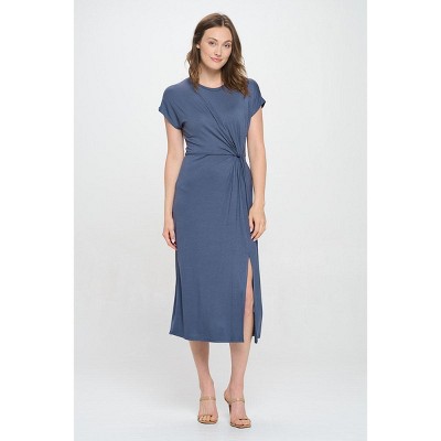WEST K Women's Parker Cre-Neck Short Sleeve Knob-Front A-Line Midi Dress