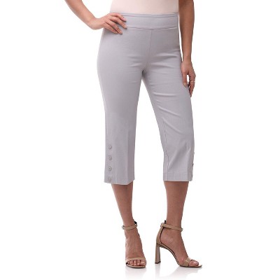 Rekucci Women's Pull-On Mid-Rise Straight-Leg Capri Pants with Button Hem Detail