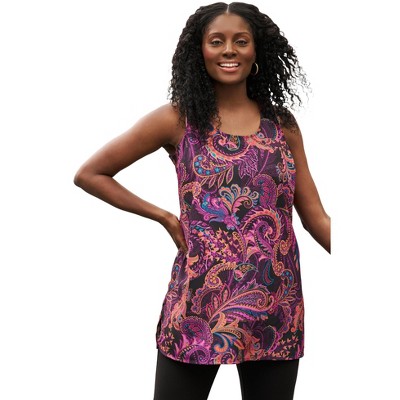Woman Within Perfect Printed Three-Quarter Sleeve Crewneck Tunic