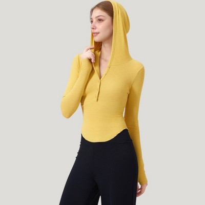 Anna-Kaci Active Women's Long Sleeve Henley Hoodie Activewear Top with Streamlined Fit and Lightweight Stretch Fabric