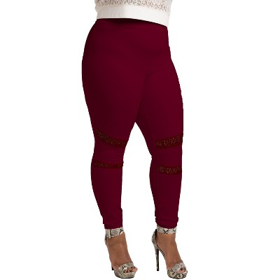 Poetic Justice Curvy Women's Black Lace Insert Pull On Ponte Legging