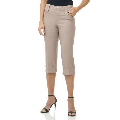 Rekucci Women's Pull-On Mid-Rise Cuffed Capri Pants Comfort Waistband