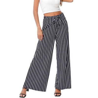BLUEMING Womens Wide Leg Pants Casual Palazzo Pants Flowy Pants Elastic High Waist Drawstring Lounges