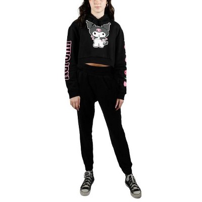 Kuromi Hearts & Bows Women's 2-Pack Charcoal Long Sleeve Crop Hoodie & Joggers Combo Set