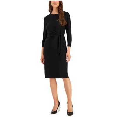 Kasper Womens Jersey Boat Neck Side Tie Faux Wrap Sheath Dress