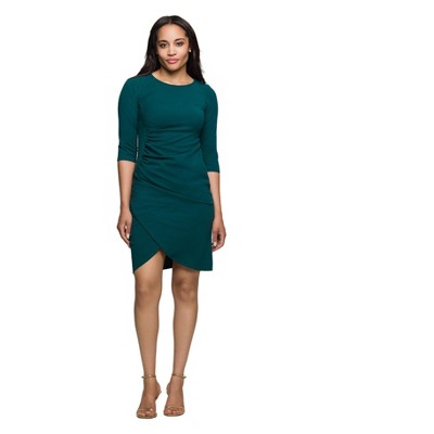 Womens Three Quarter Sleeve Ruched Tulip Hem Mini Dress - 24seven Comfort Apparel™