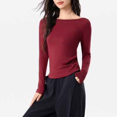 Clotth Women's Modal Long Sleeve Yoga Top - Soft and Comfortable Breathable Fitness T-Shirt,Slimming Tight Pilates Workout Top