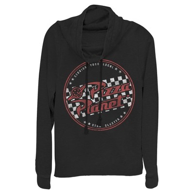 Juniors Womens Toy Story Serving Local Pizza Planet Cowl Neck Sweatshirt