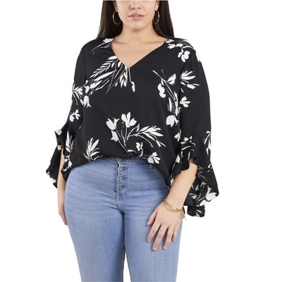 Vince Camuto Womens Printed Floral V Neck Pullover Blouse