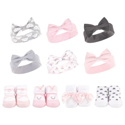 Hudson Baby Infant Girl 10Pc Headband and Socks Set, Cloud Ballet, 0-9 Months