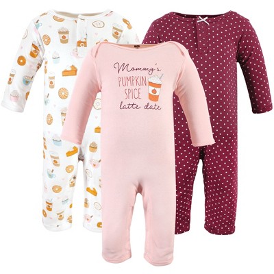 Hudson Baby Infant Girls Cotton Coveralls, Pumpkin Spice Date
