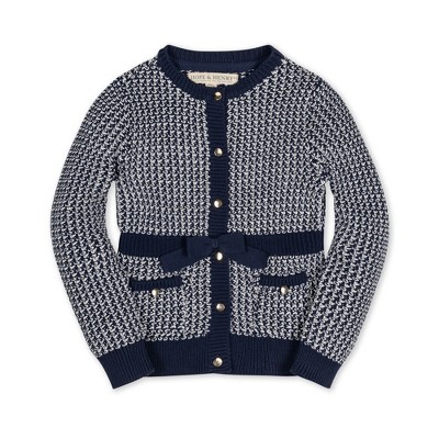 Hope & Henry Girls' Organic Fancy Tweed Stitch Cardigan Sweater with Bow, Infant