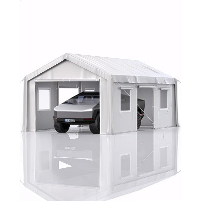13x20Ft Heavy-Duty Carport with Detachable Sidewalls, Doors, Sandbags, Waterproof Fabric for Cars, Boats, Trucks, and Motorcycles (White)