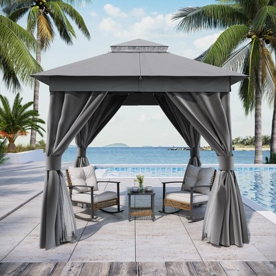 LAUSAINT HOME 8'x8' Semi-Permanent Patio Gazebo, Heavy Duty Party Tent with Double Roofs, Smoke Grey
