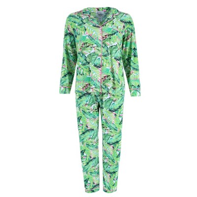 PJ Couture Women's Lightweight Ribbed Tropical Print Pajama Set