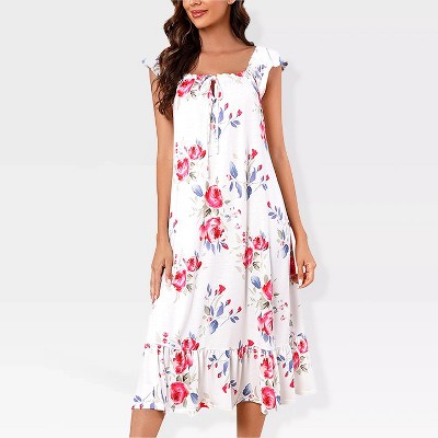 Womens Nightgowns Sleeveless Lounge Maxi Dress with Ruffle Hem Square Neck Cap Sleeve Pajama Dress for Lady