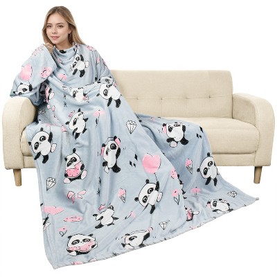 Catalonia Women Men Funny Printed Wearable Blanket Long Robe, Soft Fleece Mink Micro Plush Wrap Snuggie Blanket for Adult, Cozy Gift for Woman Man